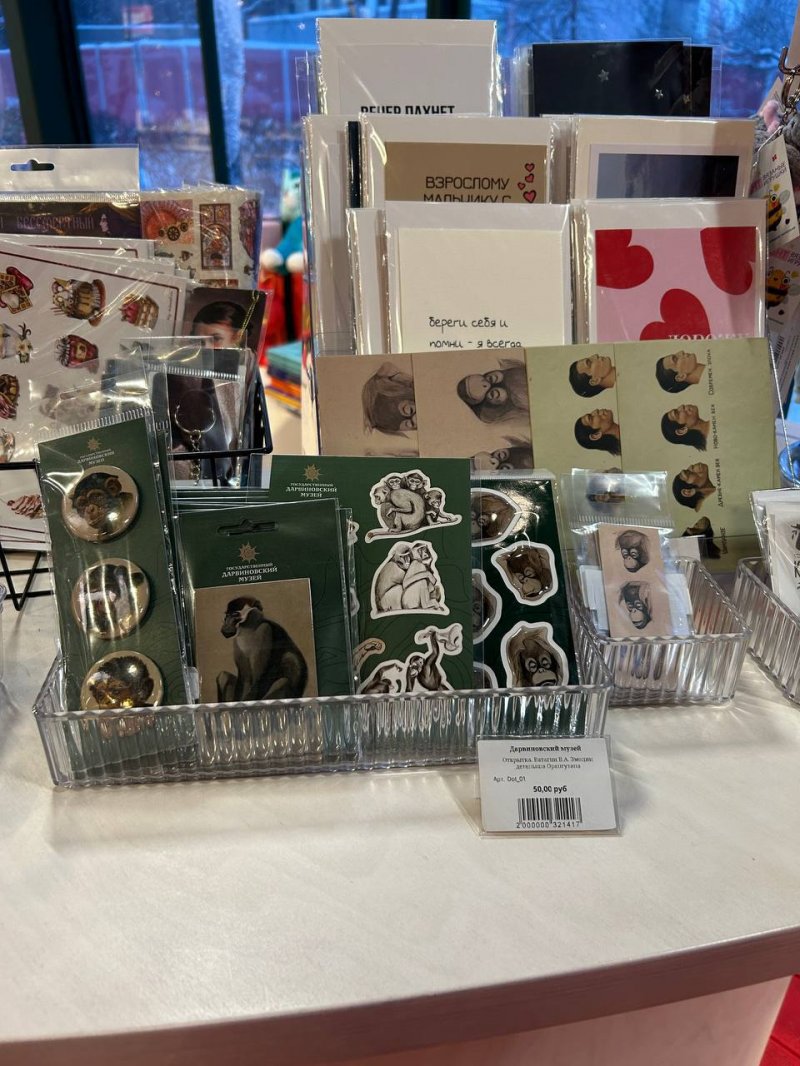 • Коллекционные сувениры по эскизам Василия Ватагина: стикеры, магниты, обложки на паспорт, календари, кружки и открытки с обаятельными приматами.