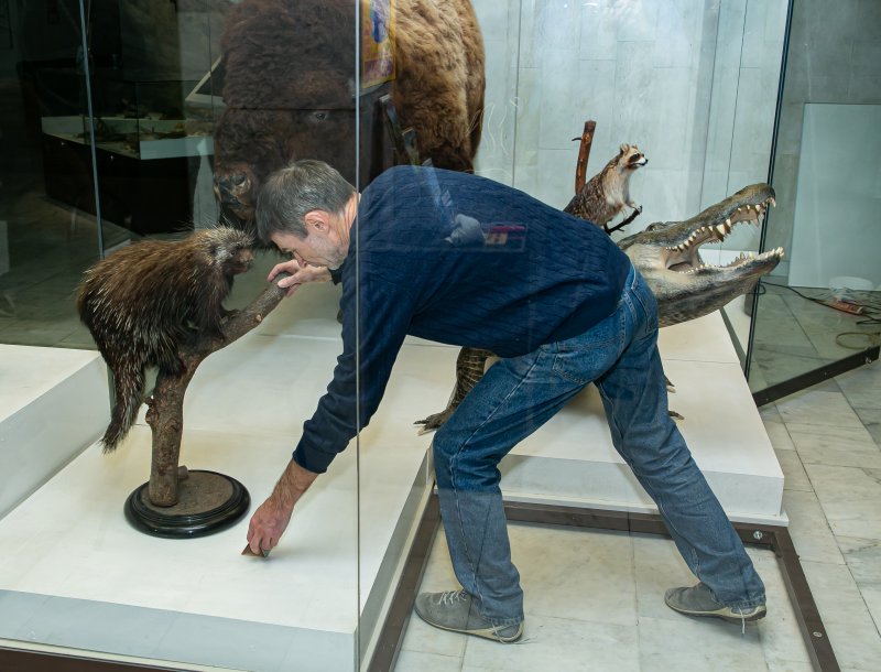 В монтаже участвовали: главный хранитель Павел Богданов, хранитель коллекции рептилий Дмитрий Милосердов, куратор зала «Зоогеография» Александр Алякринский, технические службы музея.