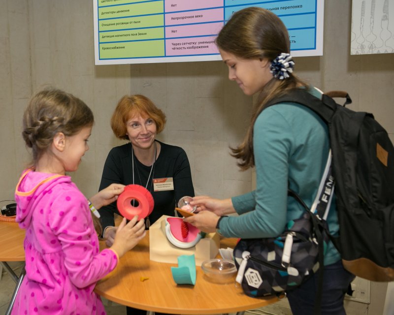Главным событием дня стало открытие нового интерактивного комплекса, посвященного зрению птиц. Заведующая образовательным отделом Наталья Михайлова провела презентацию сборно-разборной и цифровой модели глаза птицы, созданной при поддержке Фонда содействия инновациям и Научного парка МГУ. В течение всего дня посетители могли самостоятельно протестировать новинку.