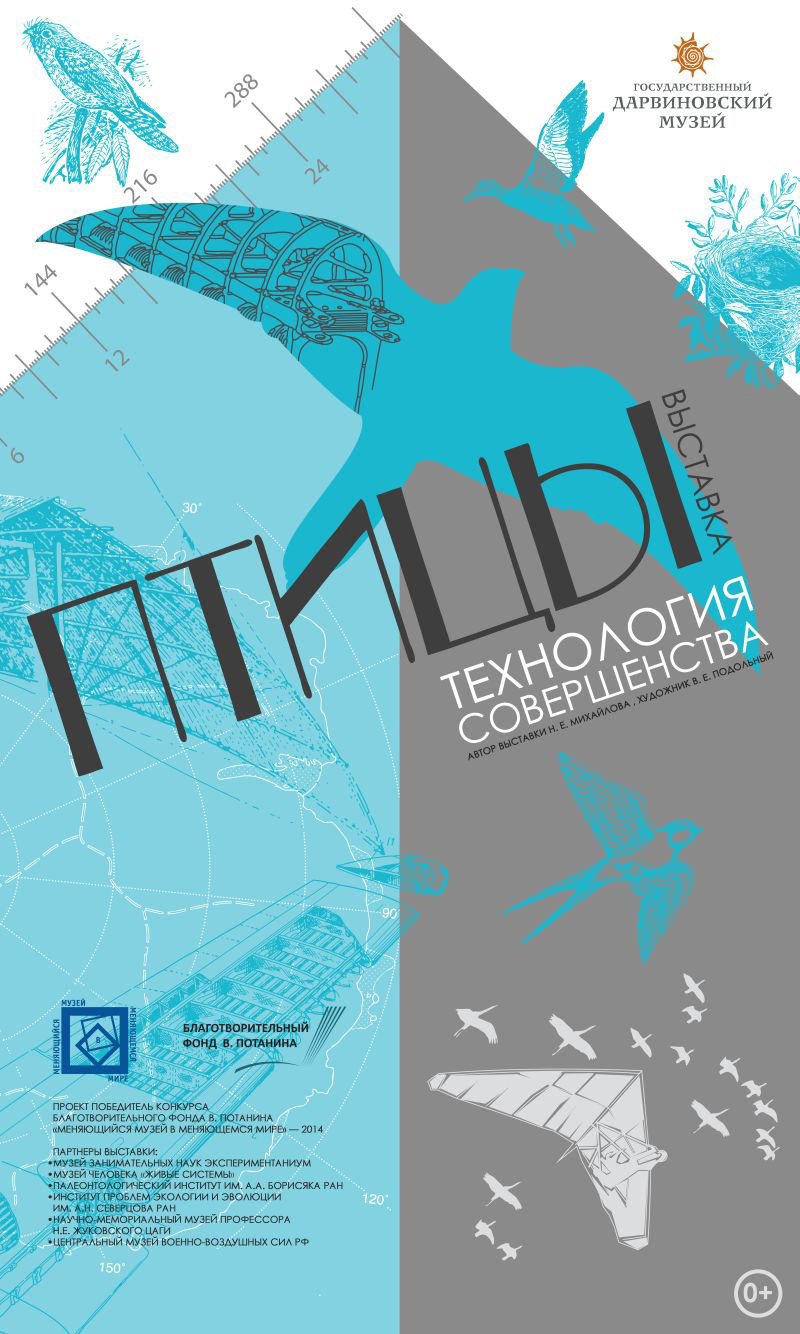 Передвижная выставка Птицы. Технология совершенства – мобильная версия проекта, ставшего победителем конкурса Благотворительного фонда В. Потанина «Меняющийся музей в меняющемся мире» в 2014 году. Созданная при активном участии специалистов из самых разных областей, она популярно и доступно, но с высокой научной точностью и достоверностью отвечает на самые сложные вопросы - какие силы поднимают птиц в воздух? Как им удается издавать столь чудесные звуки? Почему они не теряются, путешествуя вокруг Земли? Что позволяет им осуществлять погружения? Чем дышат птицы на высоте 10000 метро? Как можно жить без зубов? Каждый вопрос раскрывается для зрителей не только с точки зрения биологии, но затрагивает межпредметные логические связи между биологией и техникой, биологией и искусством, биологией и физикой. В результате птицы предстают перед нами не только как живые организмы, но и как уникальные «биомеханизмы», подчиняющиеся законам физики и влияющие на разные сферы созидательной деятельности человека.