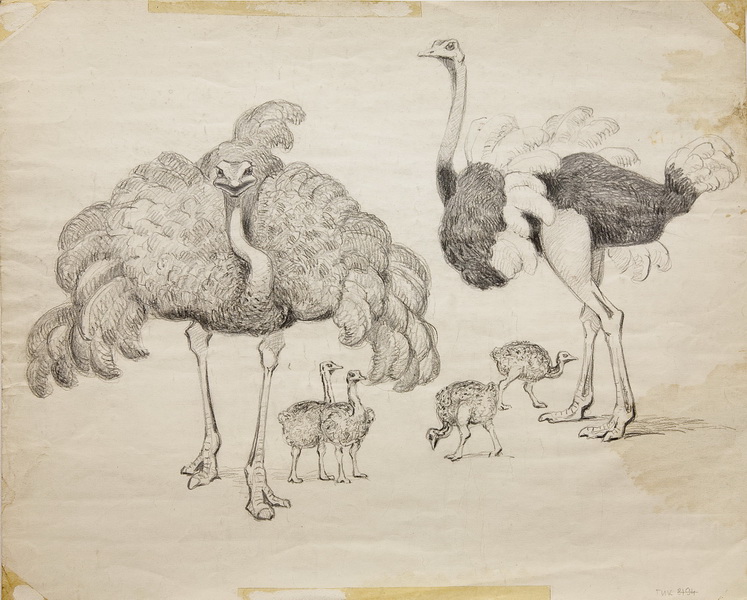 Африканские страусы. Графика. Бумага, карандаш. Ватагин В.А. (1884-1969) 1920 г.