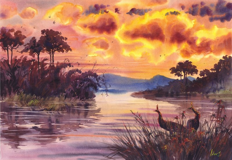 нарисованные акварелью, и, конечно, обитатели этих мест: яркие птицы-носороги,