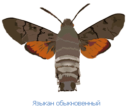 Обыкновенный языкан, он же обыкновенный хоботник, — это бабочка из семейства браж-ников. Такое странное название дано виду за длинный хоботок. Бражники — лучшие летуны среди бабочек и могут развивать скорость свыше 50 км/ч. В мире известно свыше 1200 видов бражников, большинство живет в Америке, а в Подмосковье встречается 15 видов. Бражники много часов проводят в воздухе, они питаются нектаром из цветов, но в отличие от большинства бабочек не садятся на цветок, а зависают около него, опуская свой длинный хоботок в чашечку, напиваясь нектаром прямо на лету. Бражники, как правило, ведут сумеречный или ночной образ жизни, но языкан предпочитает тьме солнечный свет. Для бражника он невелик — размах крыльев не более 5 см. Живет на сухих опушках и лугах. Первое поколение бабочек прилетает весной в Подмосковье в основном с юга (у нас бабочки и куколки зимой часто вымерзают), а осенью уже второе поколение бабочек обычно отправляется обратно на юг. Языкан в последнее время стал довольно редким видом в наших краях и занесен в Красную книгу Подмосковья.