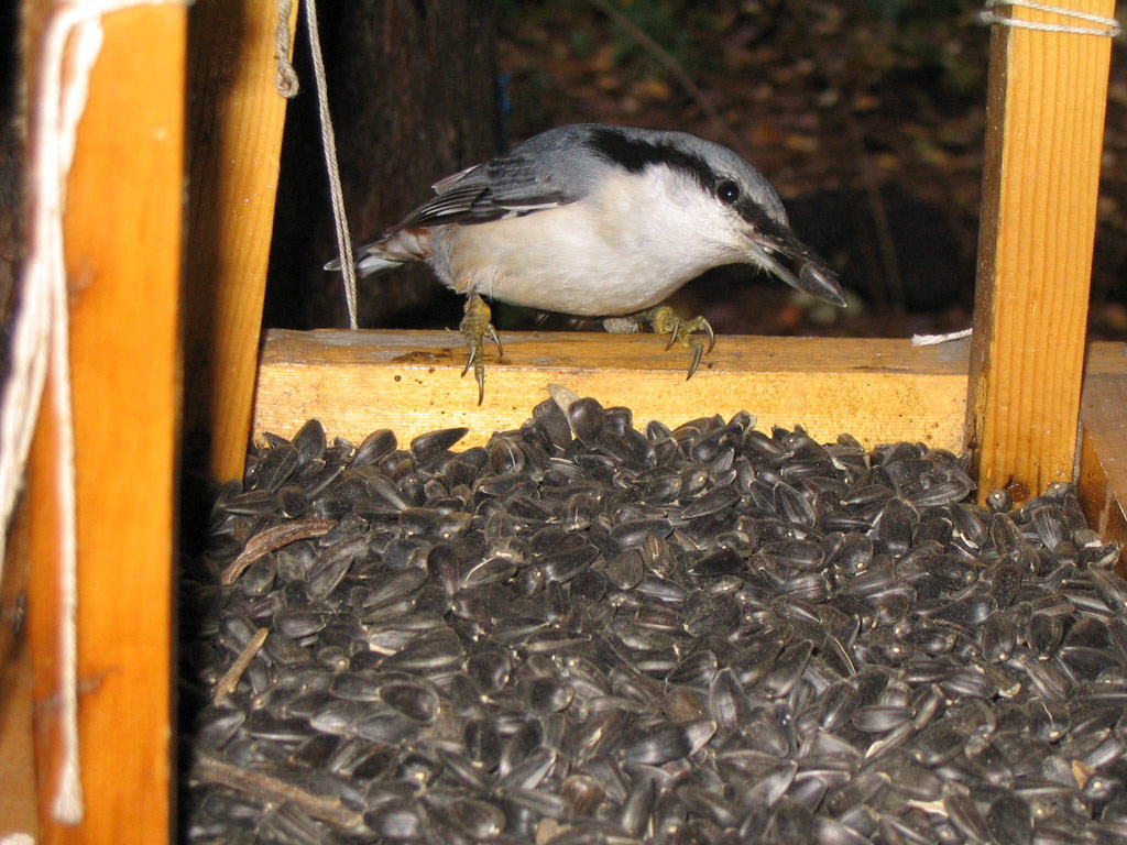 Однако, синиц трудно "перехитрить": большие синицы и лазоревки не делают запасы, но, как только семечки в кормушке кончаются, они начинают обследовать окрестные деревья и частенько находят запасы поползня.