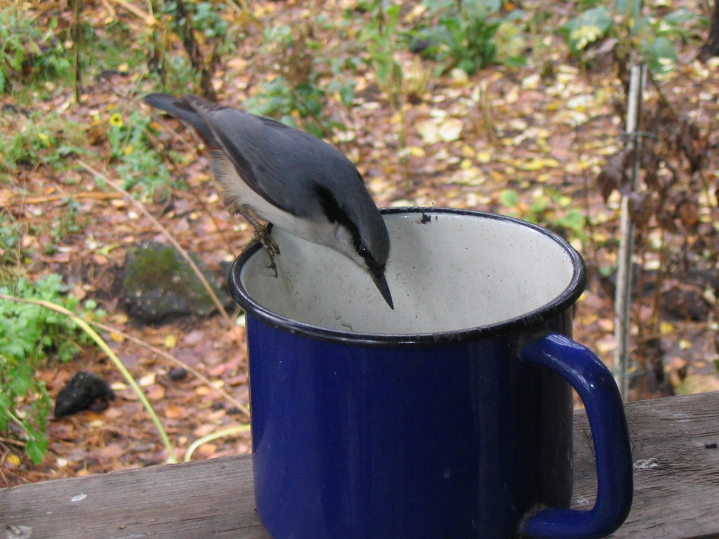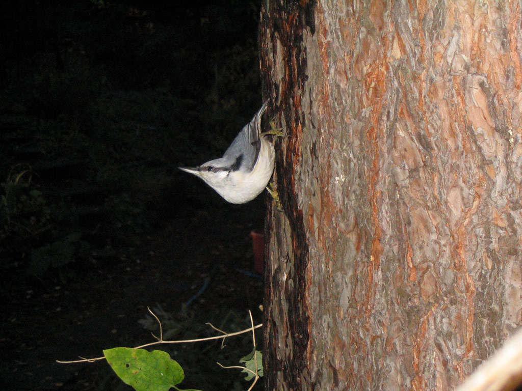 Поползень. Почти на любой лесной кормушке держится 1-2 поползня. Обычно пара птиц занимает в лесу территорию 10-30 га и держится на ней всю осень и зиму, здесь же птицы весной стараются найти и подходящее дупло для гнездования. Чужих поползней на свою территорию не пускают.
