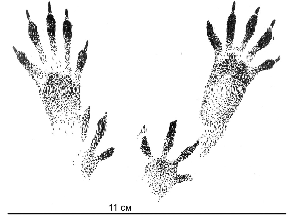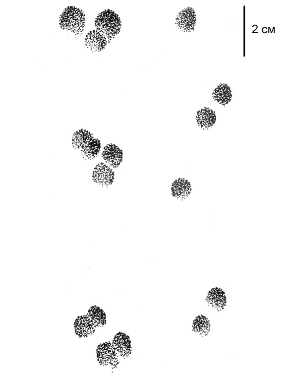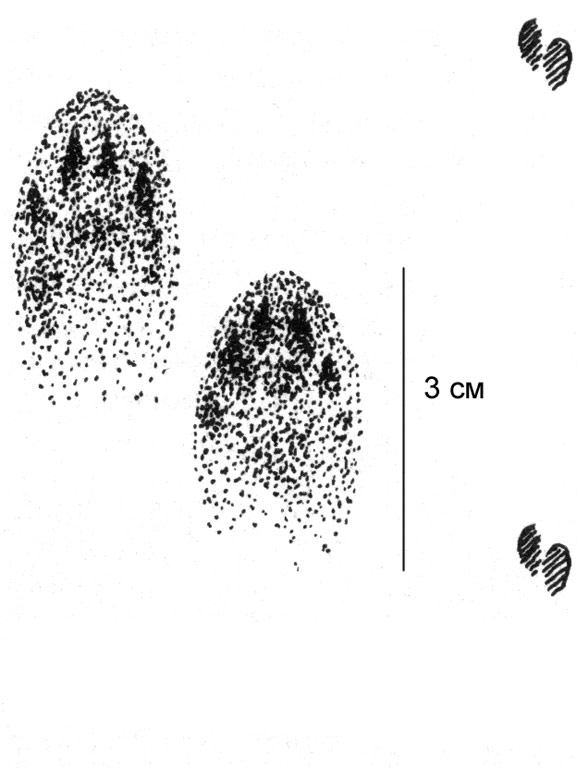 В Москве живет еще несколько видов полевок: на пустырях, лугах и опушках - обыкновенная и восточно-европейская полевки, во влажных высокотравных местах изредка встречаются экономка, пашенная и водяная полевки. Следы всех этих видов легко отличить от следов рыжей полевки: на прыжках они оставляют не "трапеции", а парные точки наподобие следов ласки, только, конечно, гораздо меньше по размеру. Хвост у этих полевок короткий и редко отпечатывается.