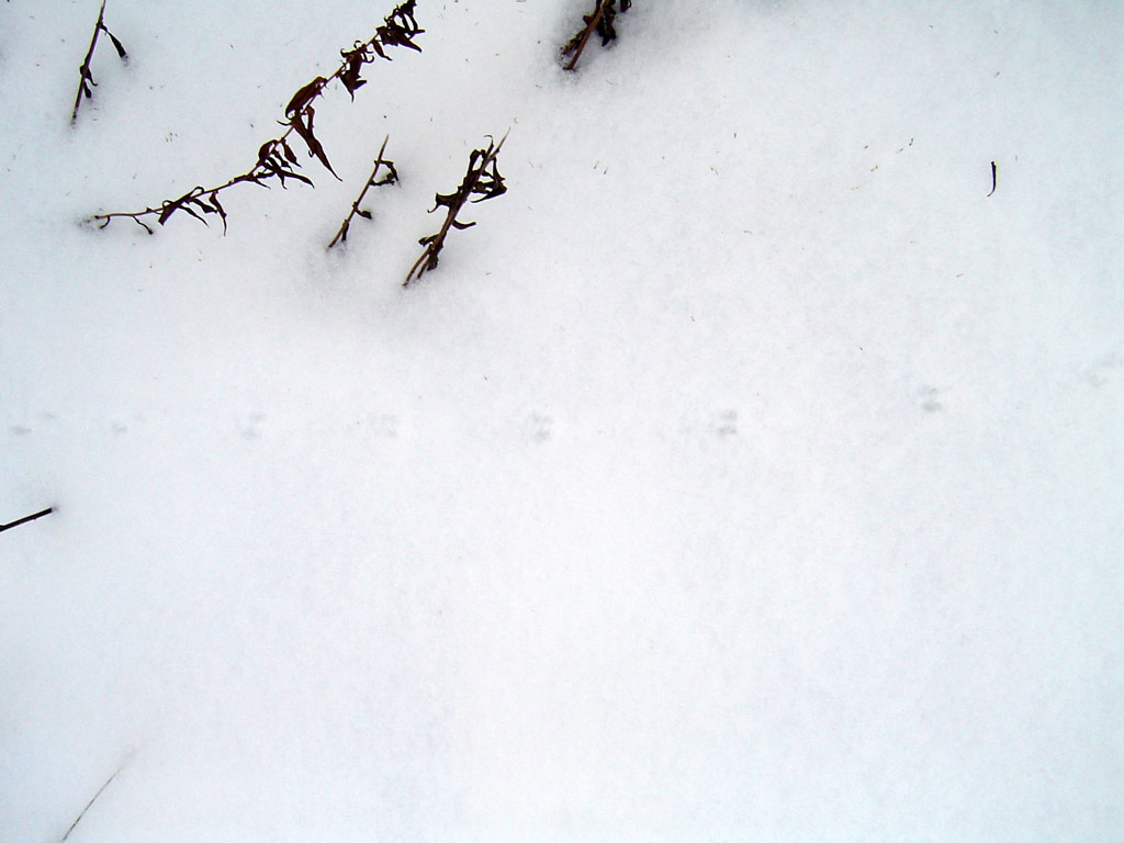 Хищные куньи. Почти наверняка вы встретите следы ласки, горностая, а если заберетесь подальше в лес - то и куницы. Все куньи оставляют парные отпечатки, у ласки расстояние между прыжками 25-35 см, у горностая 30-40 см, у куницы до 75-100 см. Все эти зверьки питаются в основном грызунами. Ласка и горностай умеют делать подснежные ходы, и цепочка их следов нередко обрывается подснежной норкой.